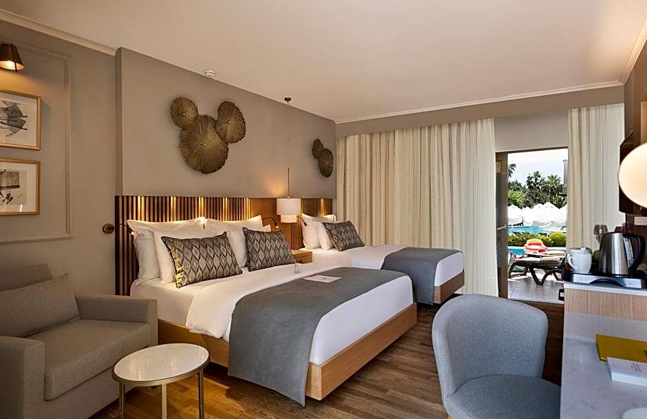 Step into a world of indulgence and relaxation with an array of featured amenities including a free water park, a beachfront with a private beach area, indoor and outdoor swimming pools, and a spa where you can pamper yourself with wellness packages at an extra charge. The hotel also offers free Wi-Fi, a kids' club, and a variety of dining options. Additionally, enjoy free access to the fitness center, tennis court, and mini-golf, ensuring non-stop entertainment throughout your stay.
